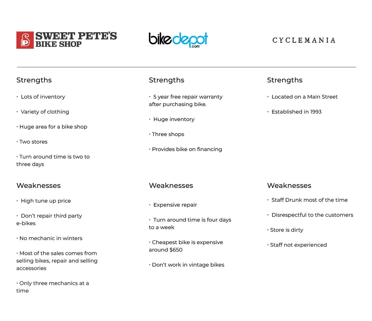 I started with market research to understand the general market, consumer, and business trends to gain a fuller understanding of the market Toronto Bike Repair is part of.